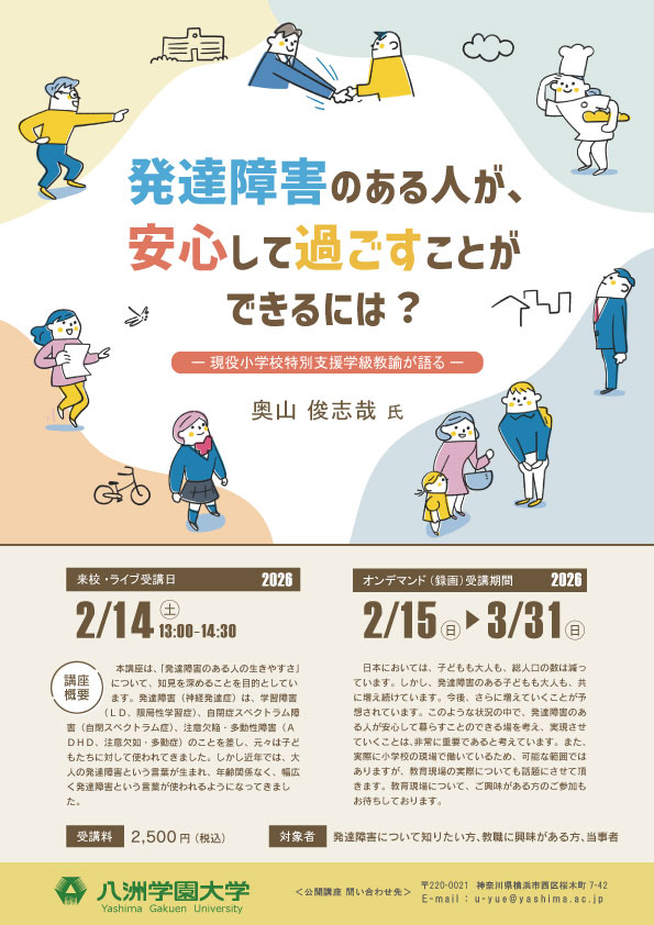 【対象】発達障害について知りたい方、教職に興味がある方、当事者