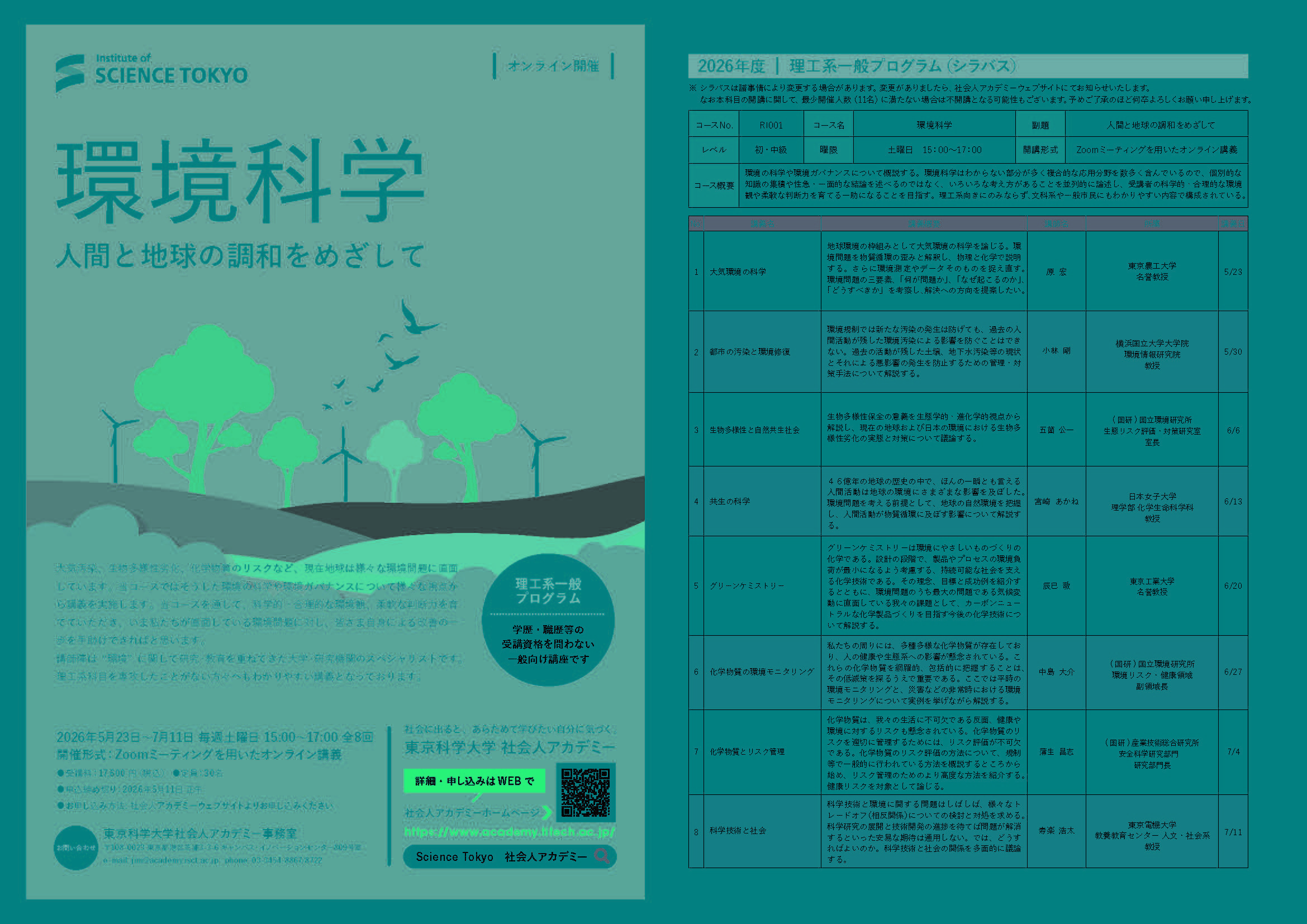 講師陣は “環境” に関して研究・教育を重ねてきた大学・研究機関のスペシャリストです。
